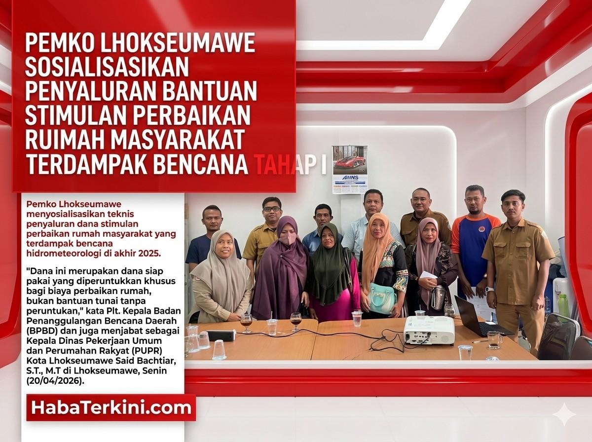 Lhokseumawe, Pemko Lhokseumawe menyosialisasikan teknis penyaluran dana stimulan perbaikan rumah masyarakat yang terdampak bencana hidrometeorologi di akhir 2025. “Dana ini merupakan dana siap pakai…
